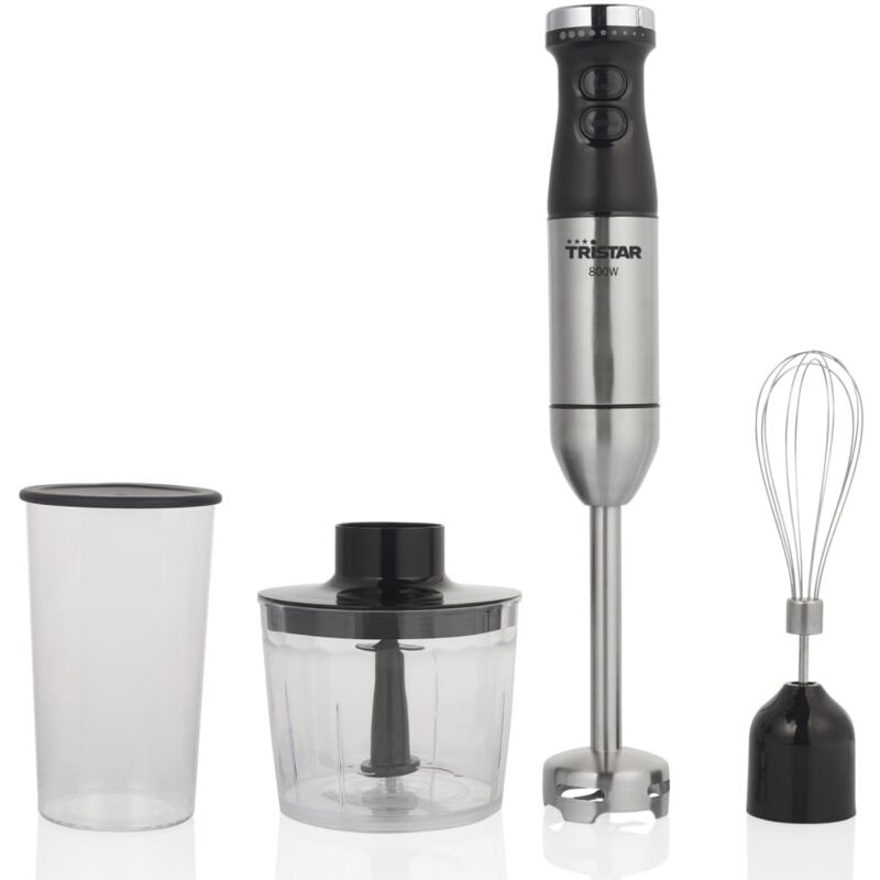 Sostituisci 4 dispositivi con un singolo set. Il Tristar MX-4839 è un ricco set con frullatore a immersione, completo di frusta, tritatutto, frullatore a immersione e misurino per preparare il pesto, i frullati e i dolci più gustosi. Il set frullatore a immersione dispone di velocità regolabile in continuo e di una funzione turbo per frullare, tritare e sbattere finemente o in modo più grossolano.