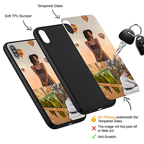 MXCUSTOM Cover Personalizzata per Apple iPhone XS iPhone X, Custodia Personalizzate Antigraffio Vetro Temperato Paraurti Morbido con Collage di Foto Multiplo Immagini Design Crea Le Tue (GHS-TMP048)