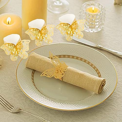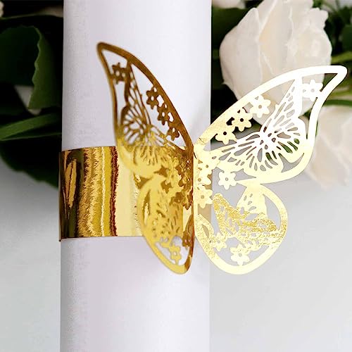 MXDHOKY 50 Pezzi Anelli di Tovagliolo 3D Farfalla, Farfalla di Carta Portatovagliolo, Anelli per Tovaglioli Tagliati, per Matrimonio, Banchetto, Cena, Decorazione da Tavola per Feste(Oro)