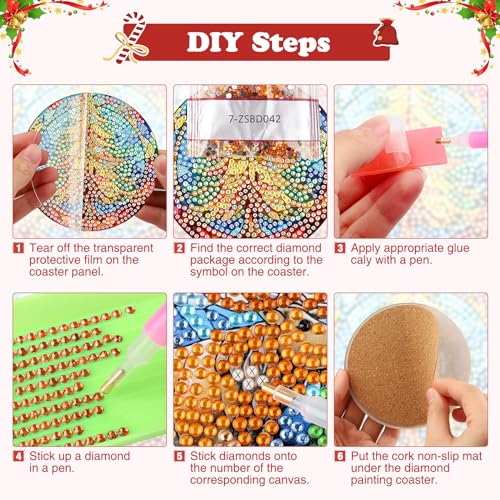 Alta qualità: i sottobicchieri da bar con pittura diamante fai da te sono realizzati in acrilico di alta qualità con motivo floreale in vetro natalizio. Il modello e i numeri sono chiari e facili da leggere. Ha una forte adesione, che può attaccare saldamente i diamanti sul sottobicchiere e non è facile cadere.
