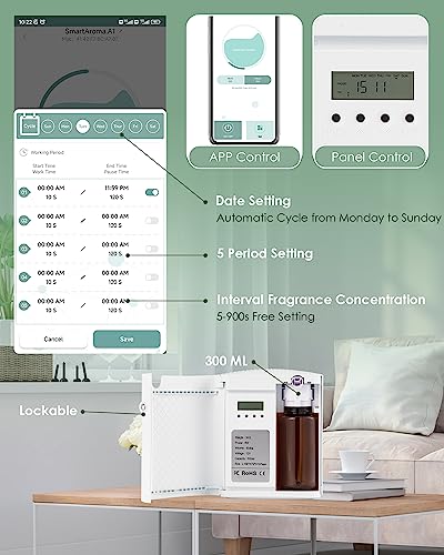 【Controllo dell'app】 Cerca "Aroma-link" nel tuo App Store per scaricare l'app corretta e quindi puoi semplicemente utilizzarla dal tuo telefono cellulare per impostare diversi livelli di concentrazione di fragranza e modalità di lavoro intelligente in base alle tue esigenze.