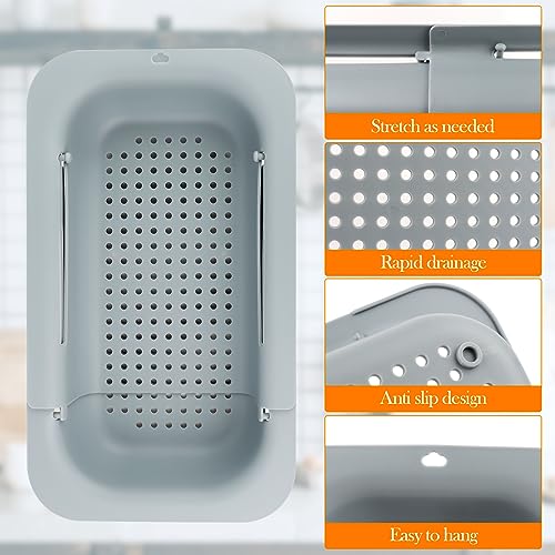 MXTIMWAN 2 Pezzi Scolapasta da Lavello Estendibile, Cestello Filtro da Cucina Pieghevole, Colino da Lavello Cucina per Sciacquare Frutta e Verdura (Grigio e Bianco)