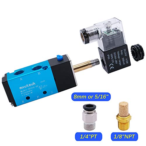 Mxuteuk Elettrovalvola pneumatica 1/4 "PT 4V210-08 DC 24V 2 posizioni 5 vie, controllo elettrico pneumatico pilotato a bobina singola