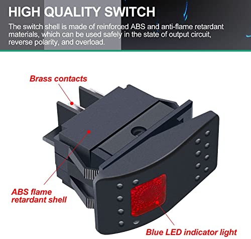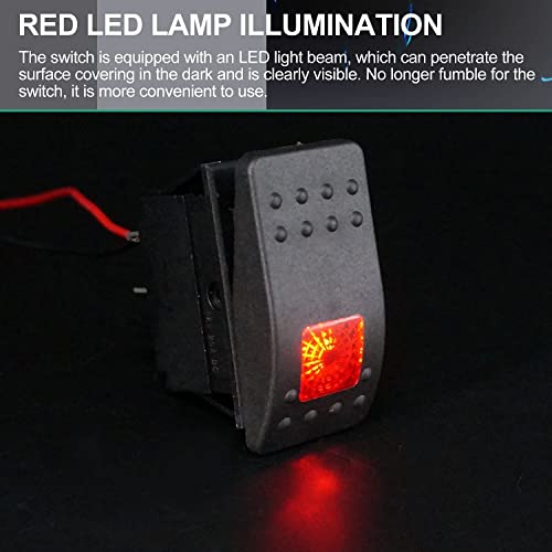 Mxuteuk 12V 20 Amp impermeabile LED rosso interruttore a bilanciere marino on/off con luce RK1-06-R
