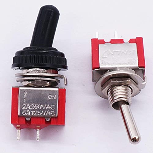 Mxuteuk Mini interruttore a levetta da 10 pezzi SPST 2 posizioni 2 pin ON/OFF AC 125V 5A con cappuccio impermeabile MTS-101-MZ