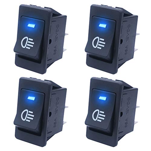 Mxuteuk 4 pezzi 12V 35A blu LED fendinebbia interruttore a bilanciere 4 pin ON/OFF per auto universale ASW-17D-BU