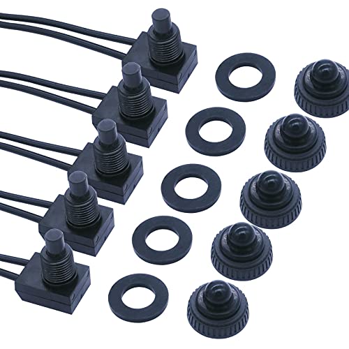 Mxuteuk 5 pezzi 12V impermeabili interruttori a pulsante on-off cablati neri, utilizzare per moto/auto MXU-KP-107