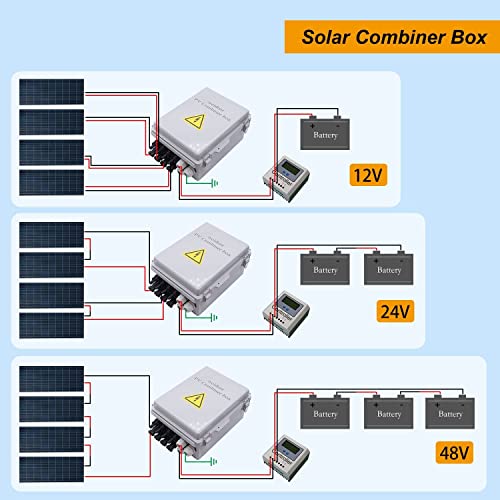 Mxuteuk Scatola combinata fotovoltaica a 4 stringhe con interruttore LED Scatola combinata solare con fusibile di corrente da 15A per sistema di pannelli solari Sistemi off-grid