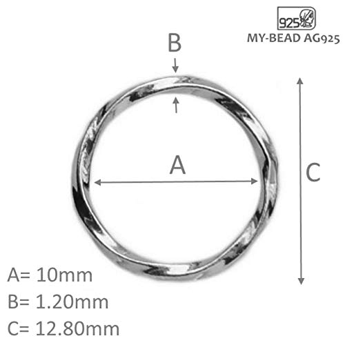 My-Bead 3 pezzi anelli intrecciato Ø 10mm filo 1.2mm Argento 925 per la creazione di Gioielli DIY