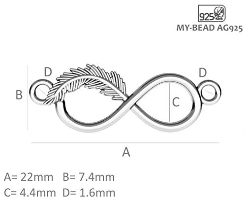 My-Bead 5 pezzi connettori gioelli Infinito 22mm Argento 925 ciondoli per bracciali e collane Qualità da gioielliere DIY
