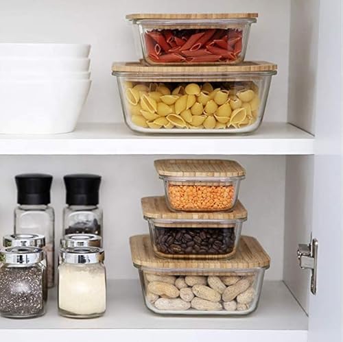 Rendete la vostra vita più facile in cucina: questo set di 4 contenitori in vetro per alimenti di alta qualità con coperchi ermetici in legno di bambù vi aiuterà a preparare la vostra cena quotidiana più facile. Ci sono diverse dimensioni per rendere il set ideale per la preparazione del cibo, pranzi in ufficio, pasti pronti per l'uso, controllo delle porzioni, ecc