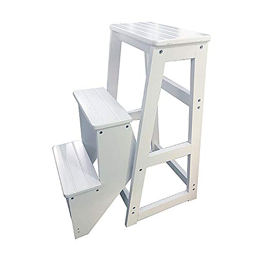 MYAOU Piccola Scala a gradini 2/3 gradini, Sgabello in Legno Pieghevole Robusta Panca per Scarpe Scalette per riporre Le Scale Scaffale per Bagno Resistente (Bianco)