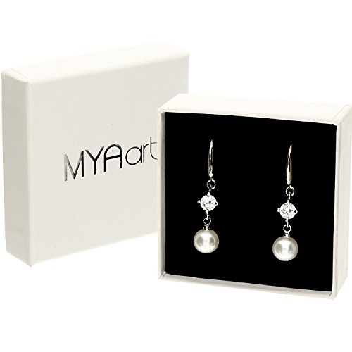 Mya Art MYASIOHR-75 Orecchini pendenti da donna con perle bianche ed elementi Swarovski della collezione Premium, realizzati in argento Sterling 925