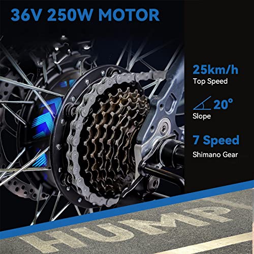 Myatu Bici Elettrica Pieghevole 26", Bicicletta Elettrica con Batteria Rimovibile 36V 10,4Ah, Motore 250W Cambio Shimano a 21 Velocita, Display LED