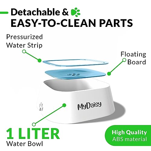 MYDAISY Ciotola Acqua Antigoccia 1L + Regalo Spazzola per il Lavaggio - Distributore D'acqua Cani e Gatti