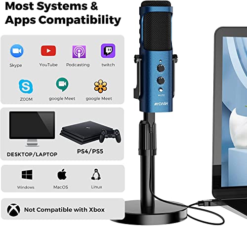 MYDASH - Microfono USB per computer, condensatore PC, con supporto, funzione renale, streaming di registrazione, per podcast, Skype, Studio, streaming, broadcast, YouTube, video, giochi