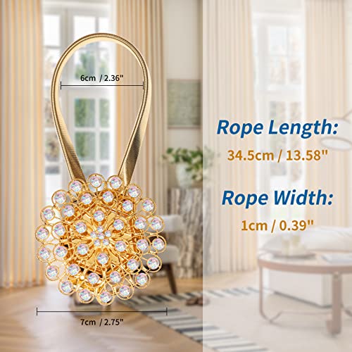 MYDAYTIN Fermacenti per tende in cristallo, confezione da 2 fermatenda magnetici, con corda metallica ad alta elasticità, fibbia per tende per casa, ufficio, finestra (giallo-colorato)