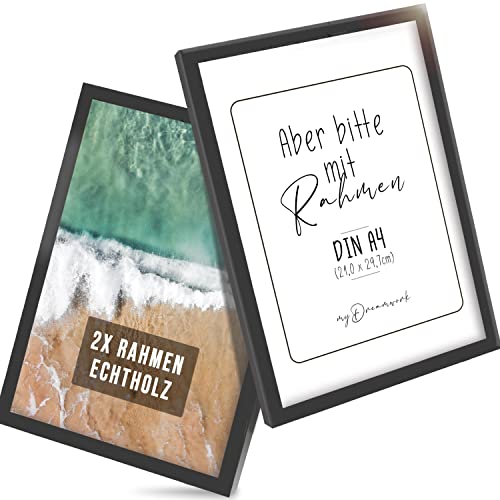 MyDreamwork New York - Set di 2 cornici per foto, formato DIN A4, cornice in legno con vetro Plexi infrangibile, formato A4, colore nero, cornice in legno 21 cm x 29,7 cm