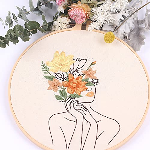 Myfelicity 3 set di serie completa di kit da ricamo per principianti, fai da te per ricamo a mano, modelli per donne e fiori, tra cui panno per motivi, filo colorato, ago, cerchio e istruzioni..