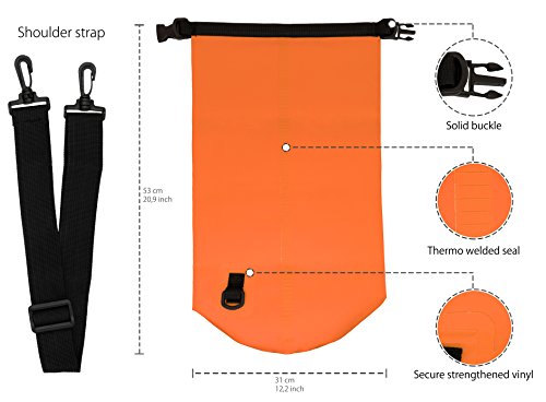 TRACOLLA REGOLABILE - Queste sacche impermeabili hanno delle spalline regolabili che ti permettono di portare la sacca con comodità. La tracolla è removibile e si porta facilmente a mano grazie ai manici.