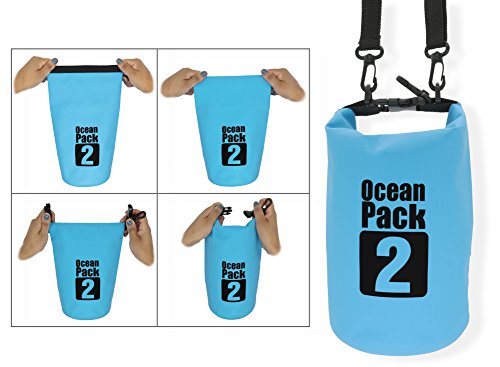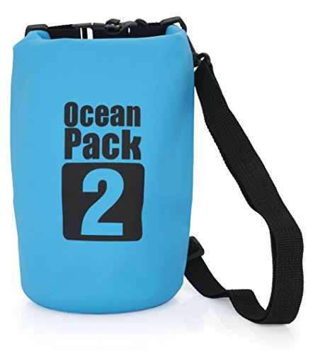 MyGadget Borsa Impermeabile 2L - Dry Bag Waterproof per Spiaggia, Piscina e Sport come Canottaggio Vela Kayak Rafting Pesca - Blu chiaro