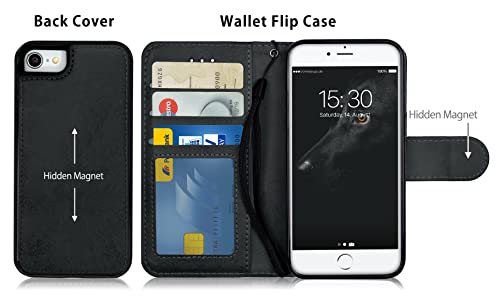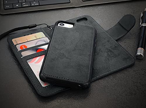 MyGadget Cover per Apple iPhone SE 2022 | 2020 | 7 | 8 - Custodia Libretto Magnetica - Portafoglio Flip Wallet Case - Porta Carte in Similpelle PU Removibile Grigio Nero