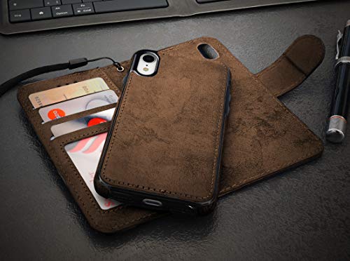 MyGadget Cover per Apple iPhone XR - Custodia Libretto Magnetica - Portafoglio Flip Wallet Case - Porta Carte in Similpelle PU Removibile Marrone
