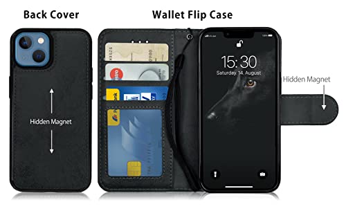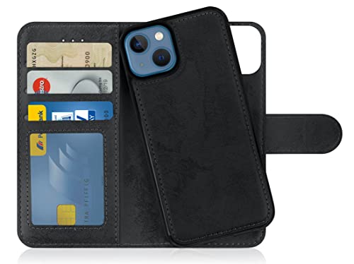 MyGadget Cover per Apple iPhone 13 - Custodia Libretto Magnetica - Portafoglio Flip Wallet Case Porta Carte in Similpelle PU Removibile Grigio Nero