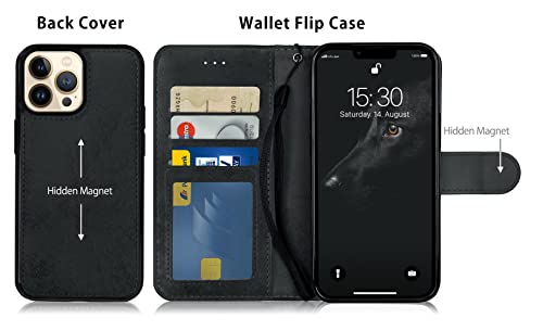 MyGadget Cover per Apple iPhone 13 Pro Max - Custodia Libretto Magnetica - Portafoglio Flip Wallet Case Porta Carte in Similpelle PU Removibile Grigio Nero