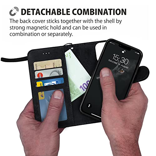 QUALITÀ - Questa custodia a libro separabile protegge il tuo telefonino, offrendo un'esperienza di utilizzo ottimale. Il coperchio pieghevole è un portatessere perché ha scomparti per le carte di credito. La protezione bookstyle chiusa ha un primo sportellino che si apre per rivelare altri 3 slot portacarte.
