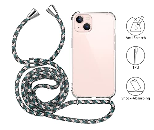 MyGadget Cover con Cordino per Apple iPhone 13 Mini - Custodia con Corda - Case Trasparente Antiurto con Laccio | Tracolla Practical Stylish Nero Camouflage
