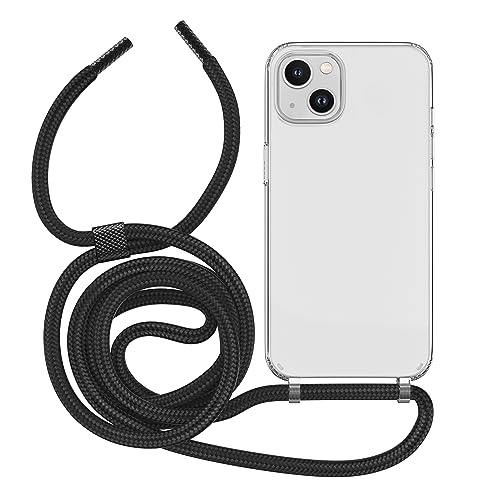 MyGadget Cover con Cordino per Apple iPhone 14 - Custodia con Corda - Case Trasparente Antiurto con Laccio | Tracolla - Practical Stylish - Nero