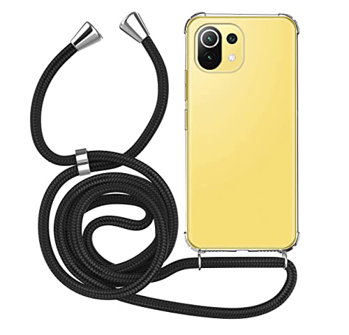 MyGadget Cover con Cordino per Xiaomi Mi 11 Lite 5G - Custodia con Corda - Case Trasparente Antiurto con Laccio | Tracolla - Practical Stylish - Nero