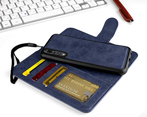 MyGadget Cover per Huawei P20 Pro - Custodia Libretto Magnetica - Portafoglio Flip Wallet Case - Porta Carte in Similpelle PU Removibile Blu Scuro