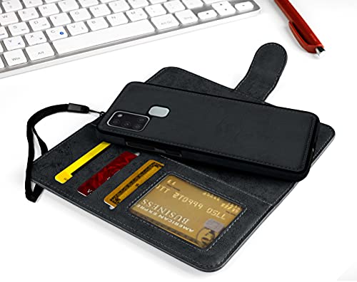 QUALITÀ - Questa custodia a libro separabile protegge il tuo telefonino, offrendo un'esperienza di utilizzo ottimale. Il coperchio pieghevole è un portatessere perché ha scomparti per le carte di credito. La protezione bookstyle chiusa ha un primo sportellino che si apre per rivelare altri 3 slot portacarte.
