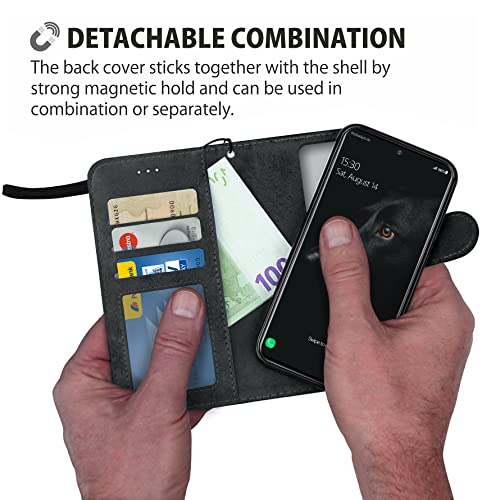 QUALITÀ - Questa custodia a libro separabile protegge il tuo telefonino, offrendo un'esperienza di utilizzo ottimale. Il coperchio pieghevole è un portatessere perché ha scomparti per le carte di credito. La protezione bookstyle chiusa ha un primo sportellino che si apre per rivelare altri 3 slot portacarte.