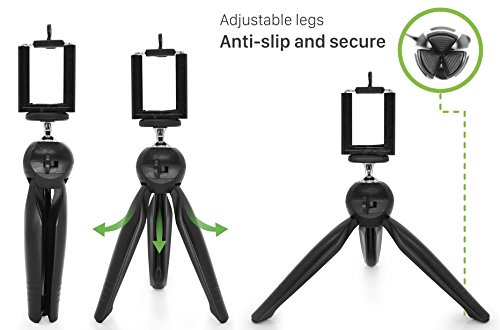 STABILIZZATORE REGOLABILE - Con la sua testa a sfera, questo piccolo piede ti permette di ruotare la tua camera di 360°. Le braccia stabili ti permettono di porre la fotocamera su ogni tipo di superficie, liscia o no.