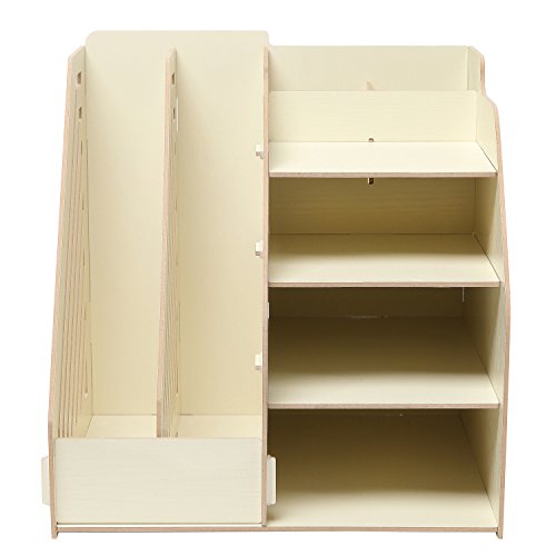MyGift Scaffale Organizer da Scrivania in Pannelli di Legno, con 2 Scomparti per Documenti/Riviste, Scomparti con Ripiani e Porta Accessori da Ufficio