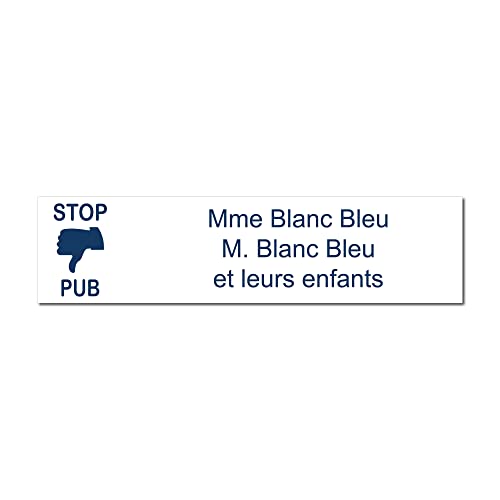 Mygoodprice Targhetta incisa per nome cassetta delle lettere Stop PUB autoadesiva 10 x 2,5 cm, personalizzabile da 1 a 3 righe, colore: Bianco