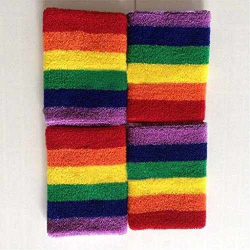 MYhose Donna Uomo Sport Braccialetti Asciugamano Fascia assorbisudore Arcobaleno Strisce Colorate Bracciali Traspiranti Corsa Badminton Supporto per Polso Avvolgere Fascia da Polso Arcobaleno A