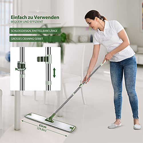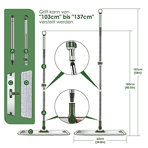 Myiosus 63CM - Mocio Lavapavimenti in Microfibra, Include 6 Mop Cuscinetti Riutilizzabili, Mop Pavimenti Professionale con 137cm Maniglia Telescopica e Testa Rotante a 360°, Regalare Raschietto