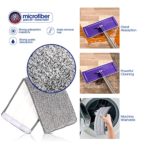 6 panni riutilizzabili: i panni per mocio in microfibra per uso a umido e a secco assorbono rapidamente l'acqua, rimuovono polvere e peli senza graffiare la superficie del pavimento, e ogni panno è lavabile in lavatrice o a mano. Sono inclusi 4 panni in microfibra per aiutarvi a pulire.