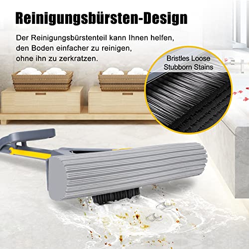 Spugna super assorbente: il mocio in spugna utilizza una testa in spugna PVA di alta qualità con forte assorbimento dell'acqua, ammorbidimento rapido e forte capacità di decontaminazione. La spugna ha un design a scanalature orizzontali per assorbire meglio sporco, lanugine e peli sul pavimento.