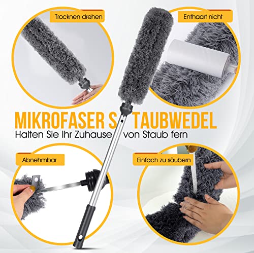 Myiosus 2 in 1 Scopa con Spolverino, Scopa con Manico e Piumino per Spolverare, Testa Regolabilee, Broom and Duster Set per Spazzare, Spolverare, Pulire le Ragnatele
