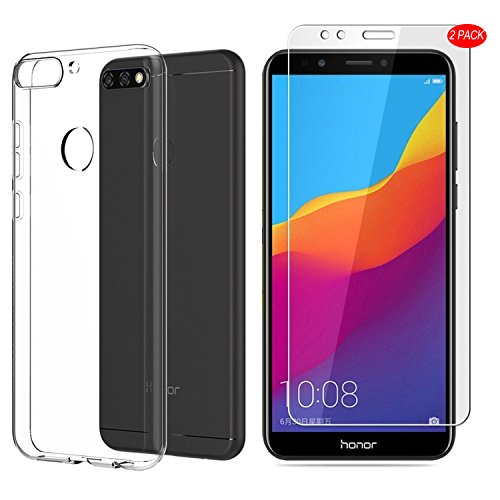 MYLBOO [3 in 1] Custodia Huawei Y7 2018 con Vetro temperato, Custodia in Trasparente TPU Morbida e Sottile + [2 Pezzi] [Durezza 9H] Proteggi Schermo in Vetro temperato per Huawei Y7 2018