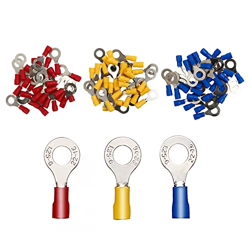 MYLERCT 90 Pezzi Anello isolato a Crimpare, Connettori Terminali Filo Semplice e Pratico, Connettori Elettrici con Superficie in Ottone Stagnato Vengono Utilizzati Per Veicoli e Navi