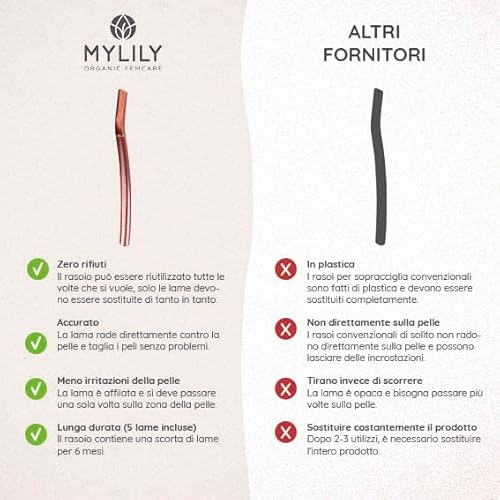MYLILY Rasoio viso oro rosa | Dermaplaning viso | Eyebrow razor | Con 5 lametta viso donna