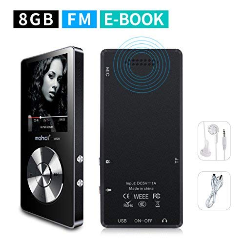Mymahdi Lettore MP3 da 8GB con Bluetooth 5.0 con Full Touch Screen Mini HiFi Lossless Sound Lettore musicale Video/Registrazione vocale/Radio FM/E-Book/Visualizzatore foto, massimo 128 GB