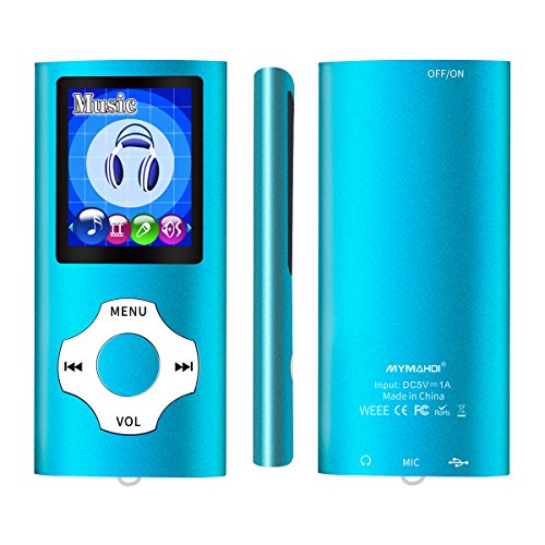Mymahdi lettore portatile MP3 / MP4, blu con schermo LCD da 1,8 pollici e slot per schede memory card, supporto memory card TF da 128GB