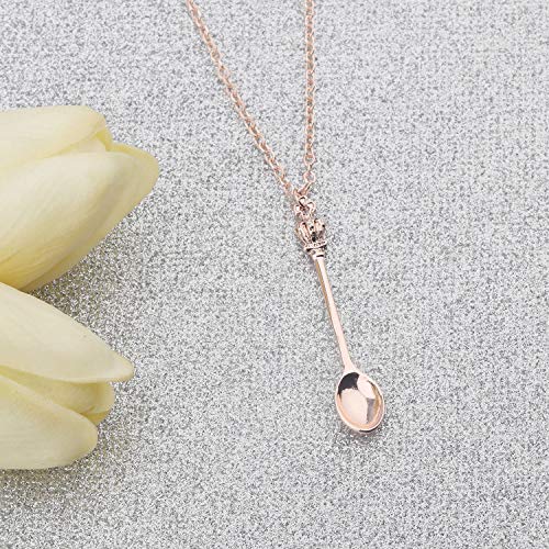 Questa mini collana con ciondolo a forma di cucchiaino presenta un design a manico lungo con una mini corona della regina e croce appollaiata sulla parte superiore, per un tocco reale inglese. È un regalo perfetto per chi ami come regalo di anniversario, regalo per fidanzata, moglie, regalo da cucina.